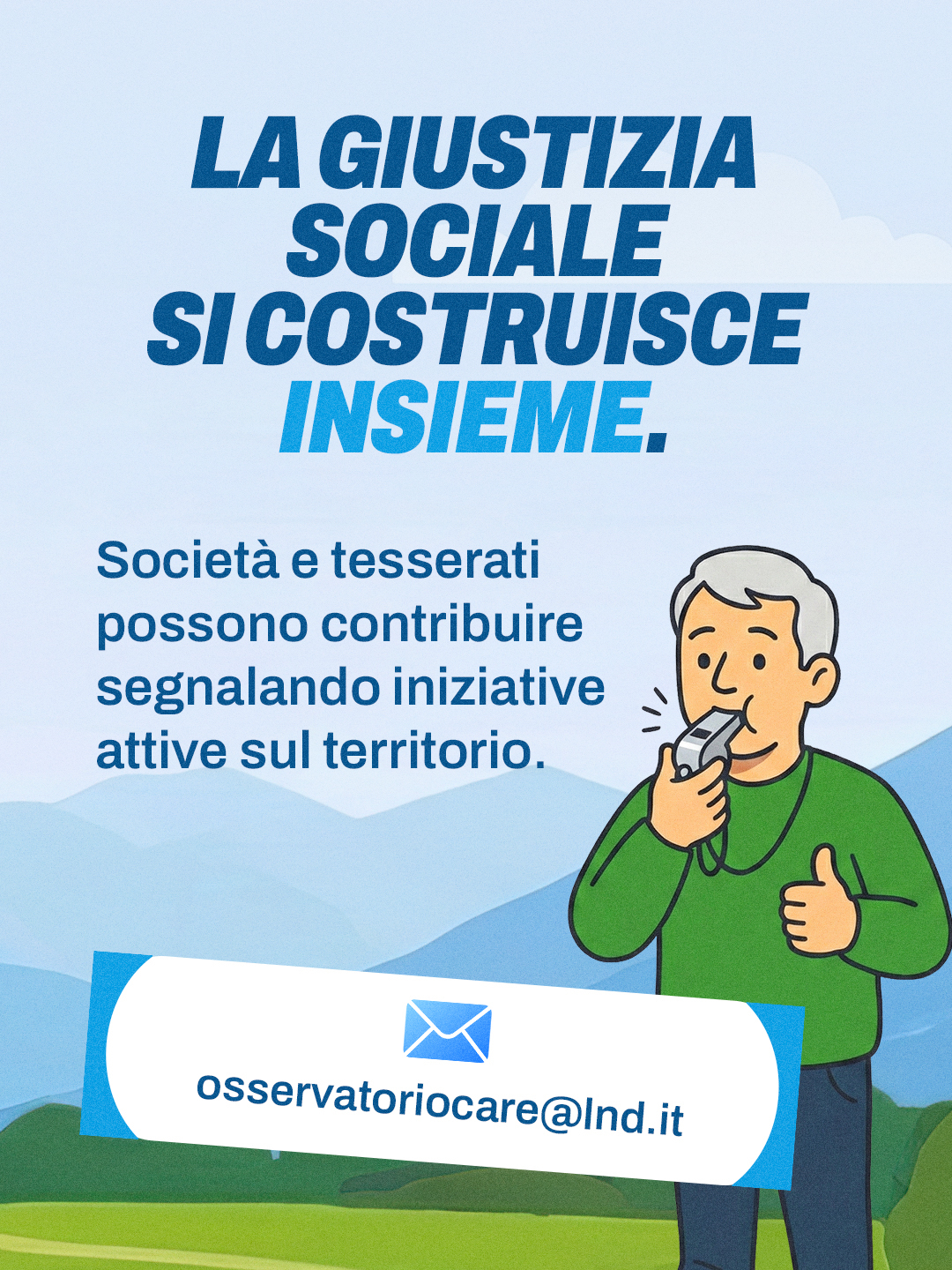 L’Osservatorio si concretizza nell’attivazione di una casella email dedicata (osservatoriocare@lnd.it), pensata come strumento di ascolto e condivisione di iniziative, progetti e buone pratiche già attive presso le società affiliate. Attraverso questo canale sarà possibile proporre esperienze che favoriscono accesso, inclusione, coesione sociale e partecipazione attiva.