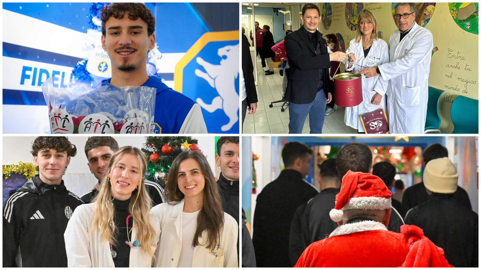 I giocatori del Piacenza in versione “Babbo Natale” hanno consegnato regali e momenti di felicità ai bambini ricoverati nei reparti di Neonatologia e Pediatria dell’Ospedale del centro emiliano. Un’iniziativa organizzata dai tifosi insieme a aziendauslpiacenza e all’associazione William Bottigelli. La Pistoiese ha festeggiato con tutta la filiera del club un “Natale Speciale” grazie alla partecipazione del team “special” orange. La squadra insieme allo staff tecnico e alla dirigenza, ha preso parte all’incontro promosso dalla Fondazione MAIC insieme alle principali realtà sportive del territorio. La Pistoiese ha triplicato l’impegno prendendo parte alla ventisettesima edizione di “Stelle nello Sport, un’asta benefica a sostegno della Fondazione Gigi Ghirotti, da anni impegnata nell’assistenza socio-sanitaria e nelle cure palliative per le persone più bisognose.
