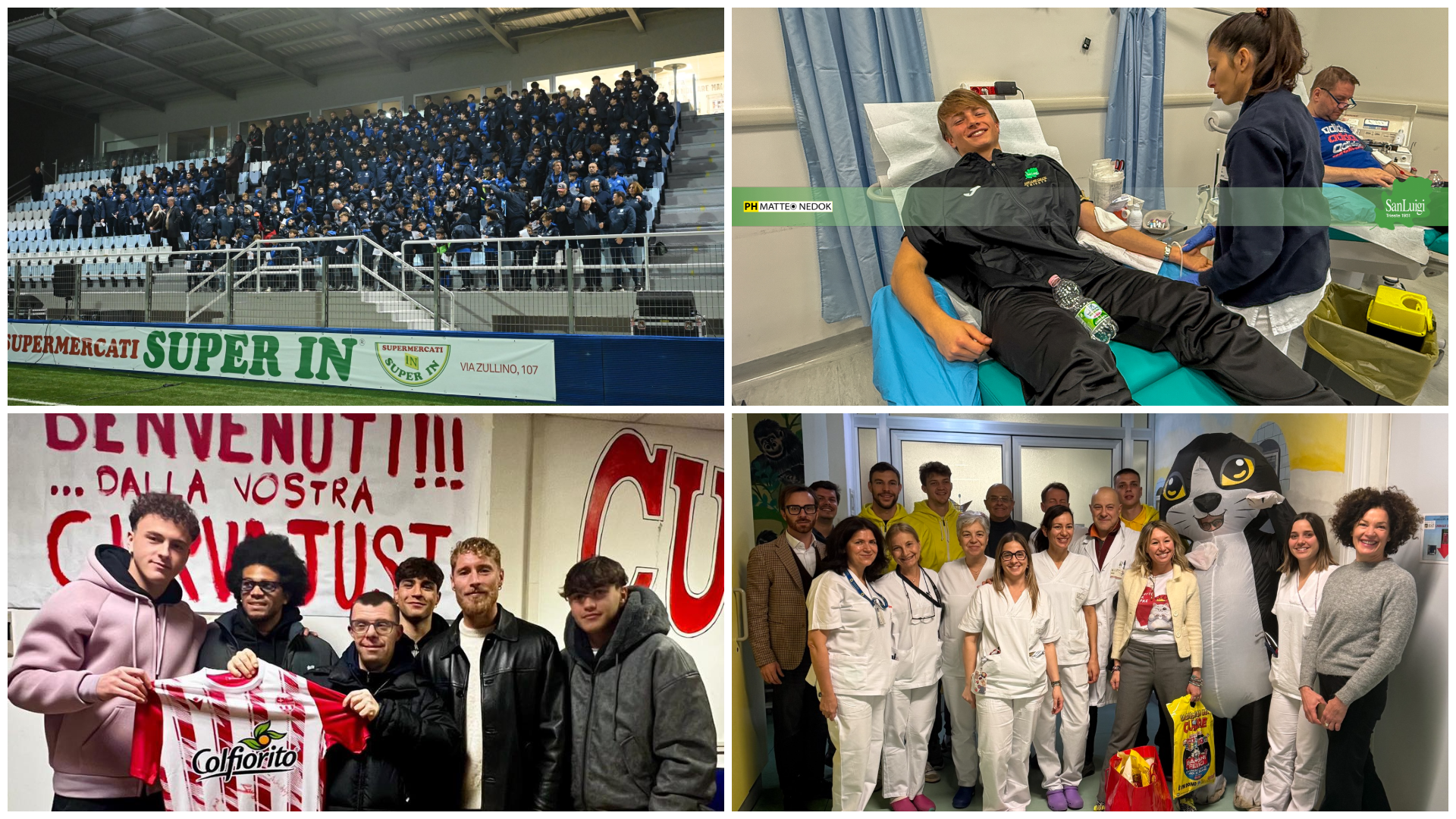 I piccoli grandi eroi del reparto di pediatria dell’ospedale di Correggio hanno ricevuto dei graditi omaggi da parte dei giocatori della Correggese. Palloni, maglie ufficiali, giocattoli e tanti abbracci per i bambini ricoverati nell’ospedale di Conegliano da parte di tutto il club. I giocatori del San Luigi hanno donato il sangue all’Ospedale “Maggiore” di Trieste. L’Oltrepò e il Vado hanno vissuto una giornata indimenticabile nel reparto oncologico pediatrico del “San Matteo” di Pavia e in quello del San Paolo” di Savona. Il Sestri Levante ha regalato la maglia e un momento di gioia a un ragazzo tetraplegico ricoverato al Centro Santa Maria dei Poveri - Polo Riabilitativo del Levante Ligure grazie alla collaborazione con l’associazione “Uniti per Paolo”. La Biellese ha dato il via ad una collaborazione fattiva con l’Associazione Donatori Midollo Osseo.